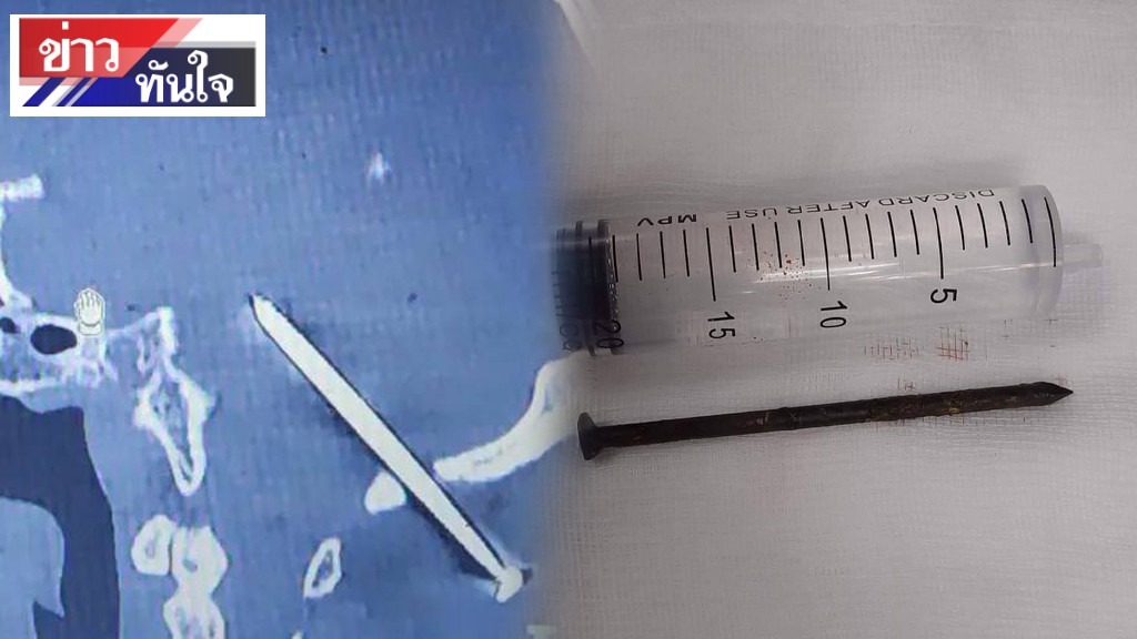 หลังจากการตรวจวินิจฉัยเบื้องต้น แพทย์ได้พบสิ่งที่ไม่คาดคิด นั่นคือ “ตะปูขนาดใหญ่” ฝังอยู่ลึกในเนื้อสมองของผู้ป่วย ทีมแพทย์จึงรีบทำการตรวจ CT angiogram เพื่อประเมินความเสียหายและระบุตำแหน่งที่แน่ชัดของวัตถุแปลกปลอมชิ้นนี้ ผลการตรวจพบว่าโชคดีที่ตะปูไม่ได้ทำลายหลอดเลือดสำคัญในสมอง ซึ่งเป็นสาเหตุสำคัญที่ทำให้ผู้ป่วยยังมีชีวิตรอดมาได้