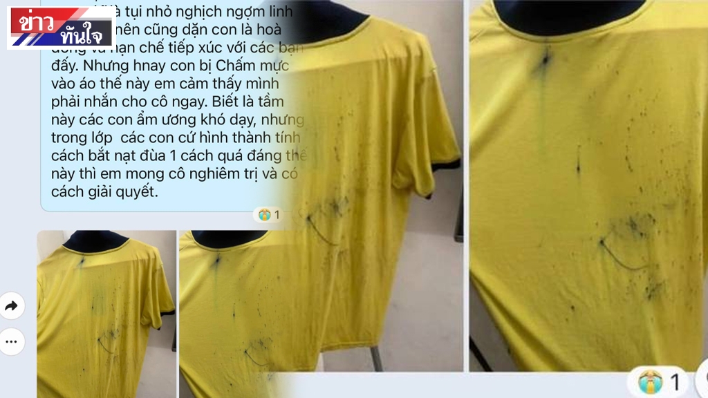 จุดเปลี่ยนสำคัญเกิดขึ้นเมื่อคุณแม่พบเสื้อสีเหลืองตัวใหม่ของลูกชาย ซึ่งเปื้อนด้วยหมึกปากกาลูกลื่น เธอเล่าว่าเหตุการณ์นี้เกิดจากการที่เพื่อนในชั้นเรียนจงใจทำให้เสื้อของลูกชายเปื้อน ทำให้เขาร้องไห้ด้วยความกังวลว่าคุณยายจะต้องเหนื่อยในการซักทำความสะอาด จนถึงขั้นพยายามซ่อนเสื้อไว้เพื่อไม่ให้ยายต้องลำบาก แม้ว่าลูกชายจะรายงานเหตุการณ์นี้ต่อครู แต่ก็ไม่ได้รับการแก้ไขอย่างจริงจัง