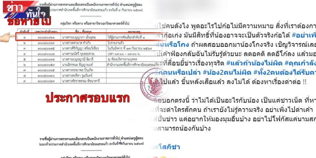 ทั้งนี้ ยังคงต้องรอผลการตรวจสอบอย่างละเอียดจากหน่วยงานที่เกี่ยวข้อง เพื่อความเป็นธรรมและความโปร่งใสในกระบวนการคัดเลือกครูผู้ช่วยต่อไป